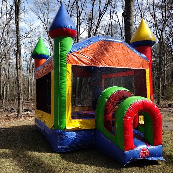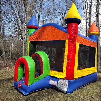 Item details | The mini castle bounce house is perfect for the little ones! Made from the same premium grade vinyl as the larger units. The rainbow colors of this unit go great with any party theme. It has an emergancy exit on the top of the unit. Conpletely enclosed with a safety entrance. Great option for smaller yard spaces. | ||