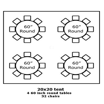 Item details | Premium grade white pole tent (20x20 tent only). Must be setup on grass, required area is 26' x 26'. Perfect for 32 guests! Tables and chairs are not included. **Tent rentals are from Fri - Mon or weeklong Fri - Fri. | ||